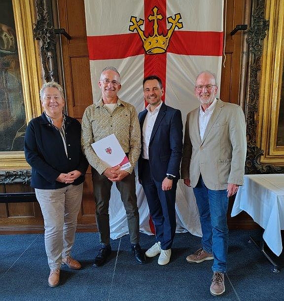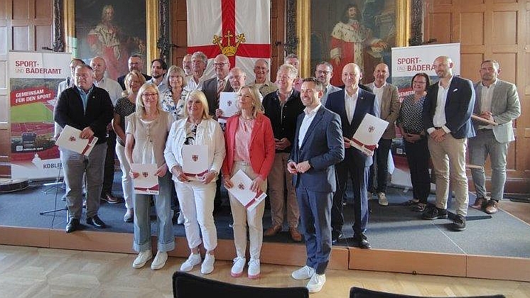 Anlässlich einer Feierstunde am 12. Mai 2025 wurde unserem 2. Vorsitzenden Heinz-Jürgen Meurer für seine langjährige ehrenamtliche Tätigkeit in dieser Funktion sowie beispielhaft auch für den Aufbau und die Betreuung der Vereinshomepage, der Mithilfe bei der Organisation und Durchführung von Vereinsfesten und dem kurzzeitigen Einsatz als Abteilungsleiter der Turnabteilung durch Herrn Oberbürgermeister David Langner und Frau Bürgermeisterin Ulrike Mohrs die Sport-Ehrennadel der Stadt Koblenz verliehen.